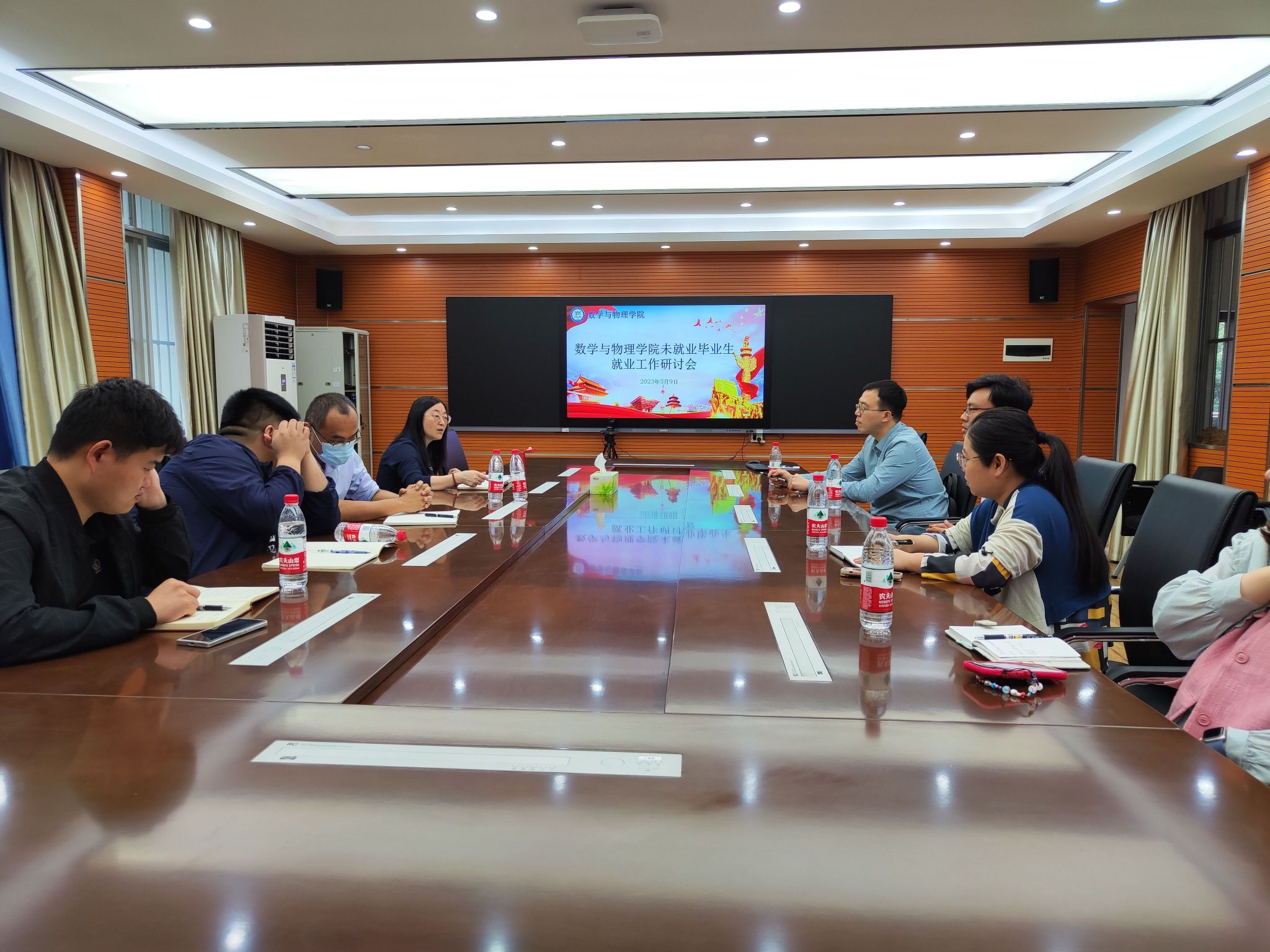 为做好毕业生安全教育工作,5月9日,数学与物理公司在创新楼301召开毕业班安全工作布置会。会议由邹同霞副书记主持,全体系主任、毕业班班主任、员工党支部书记、辅导员参会。