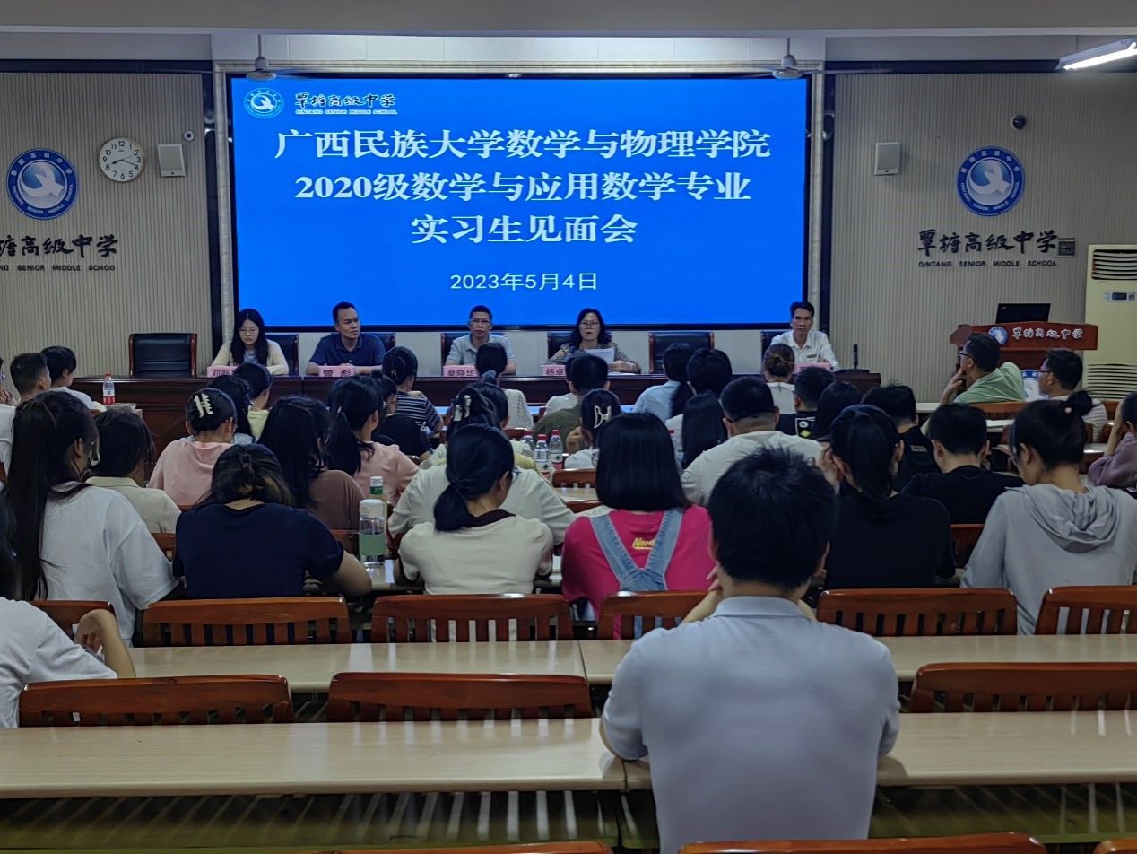 5月4日,莫晓华副经理、曾彪主任、邓新星老师、黄家晴老师一行到贵港市覃塘高中开展访企拓岗及欢送2020级数学与应用数学专业员工实习。莫有童董事长亲切接待并召开了实习生见面会。