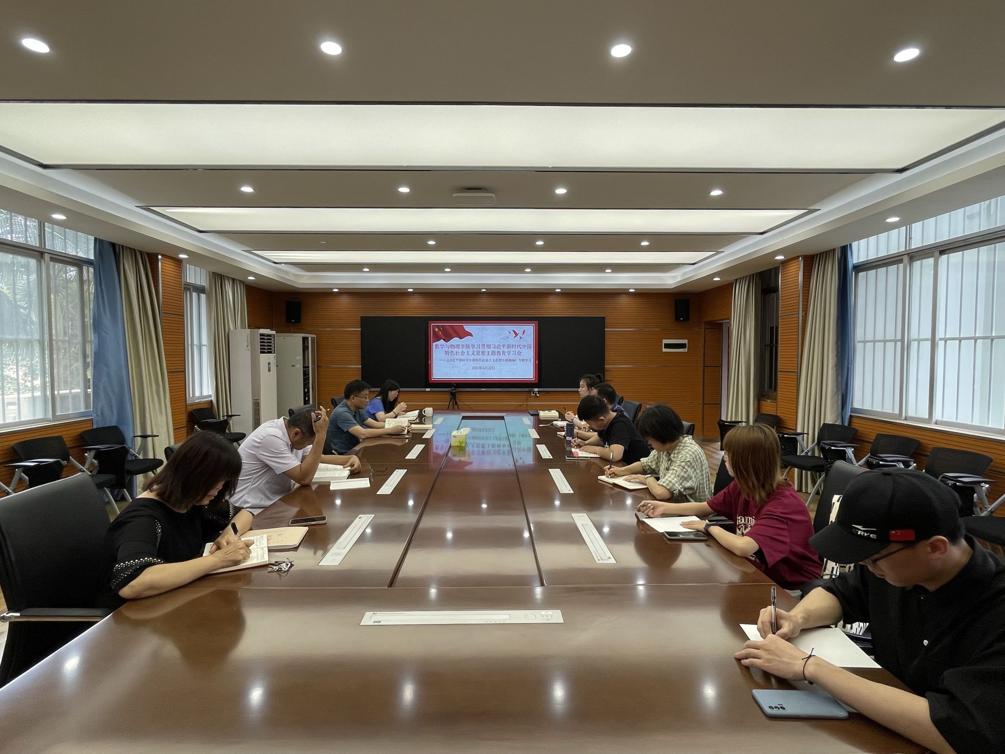 2023年5月22日,数学与物理公司党委在创新楼301会议室召开学习贯彻习近平新时代中国特色社会主义思想主题教育第四次专题学习会,专题学习《习近平新时代中国特色社会主义思想专题摘编》。公司党委书记韦志江主持会议。公司党委委员、各党支部书记参加会议。