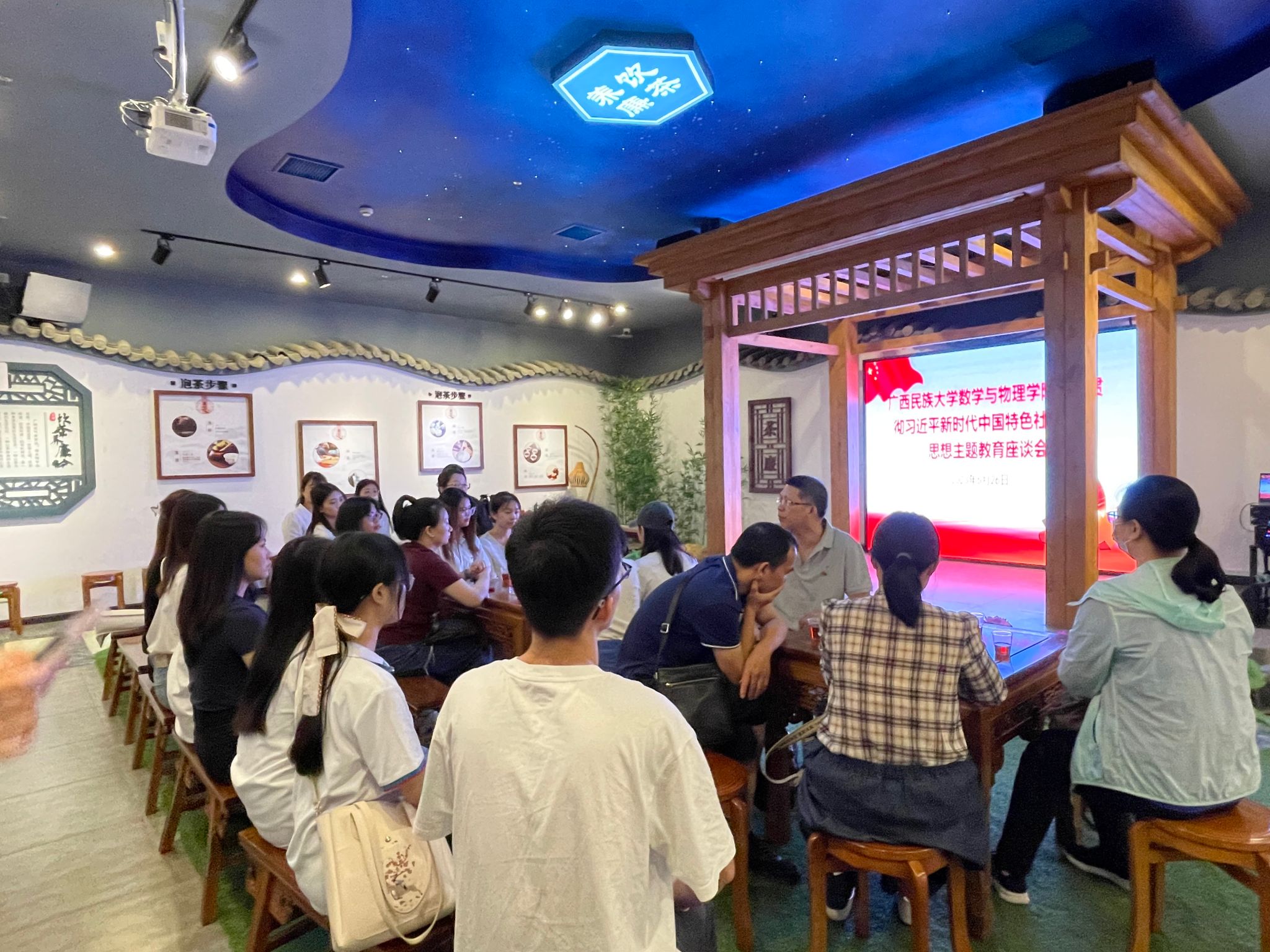 江南区廉洁文化教育基地以茶主线的植茶生廉、饮茶养廉、品茶悟廉、论茶弘廉等让同志们印象深刻;基地内的历史清官廉吏,展示廉政文化的丰富内涵;在馆内设置电子设备开展廉政小游戏进一步加深了党员同志们“不敢腐、不能腐、不想腐”的意识,党员同志们边看、边思、边悟,于移步换景简接受“茶廉文化”的熏陶和洗礼,并于现场开展座谈会积极思考和交流探讨如何更好地开展廉洁教育工作。