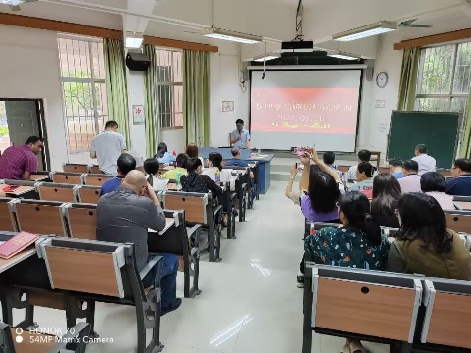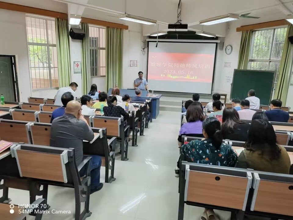 为了进一步加强师德师风建设,提高教师职业道德水平,营造教书育人、崇尚师德的良好氛围,数学与物理公司于5月16日在创新楼六梯教室开展师德师风专题学习培训。公司党委书记韦志江主持,公司领导和全体教职工参加。