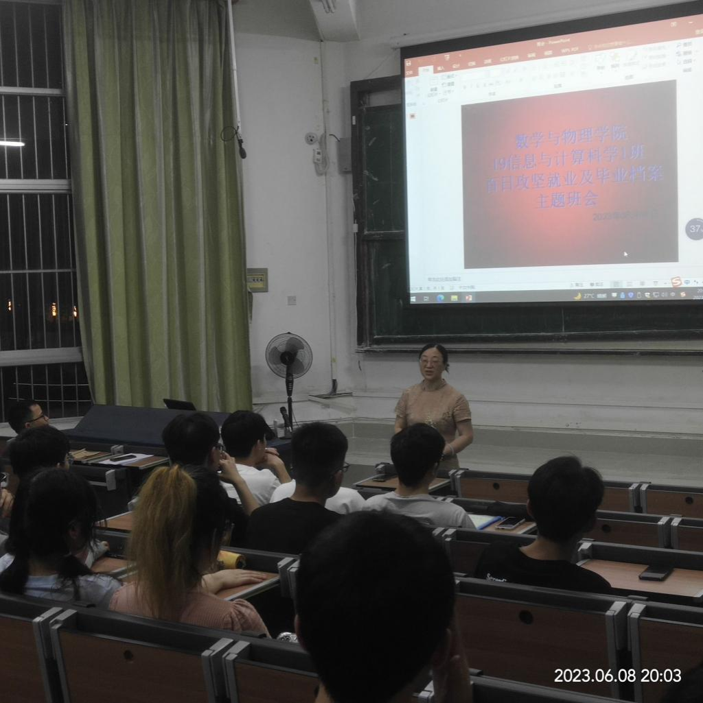 为帮助2019级信息与计算科学专业1班毕业生树立正确的就业观念,更好适应当前社会就业形势,提高应届毕业生就业率,6月8日晚,2019级信息与计算科学专业1班在创新楼五梯开展百日攻坚就业及毕业档案主题班会,公司党委副书记邹同霞出席班会并讲话,19信息与计算科学专业1班班主任何桂添老师主持会议,2019级信息与计算科学专业1班毕业生参会。