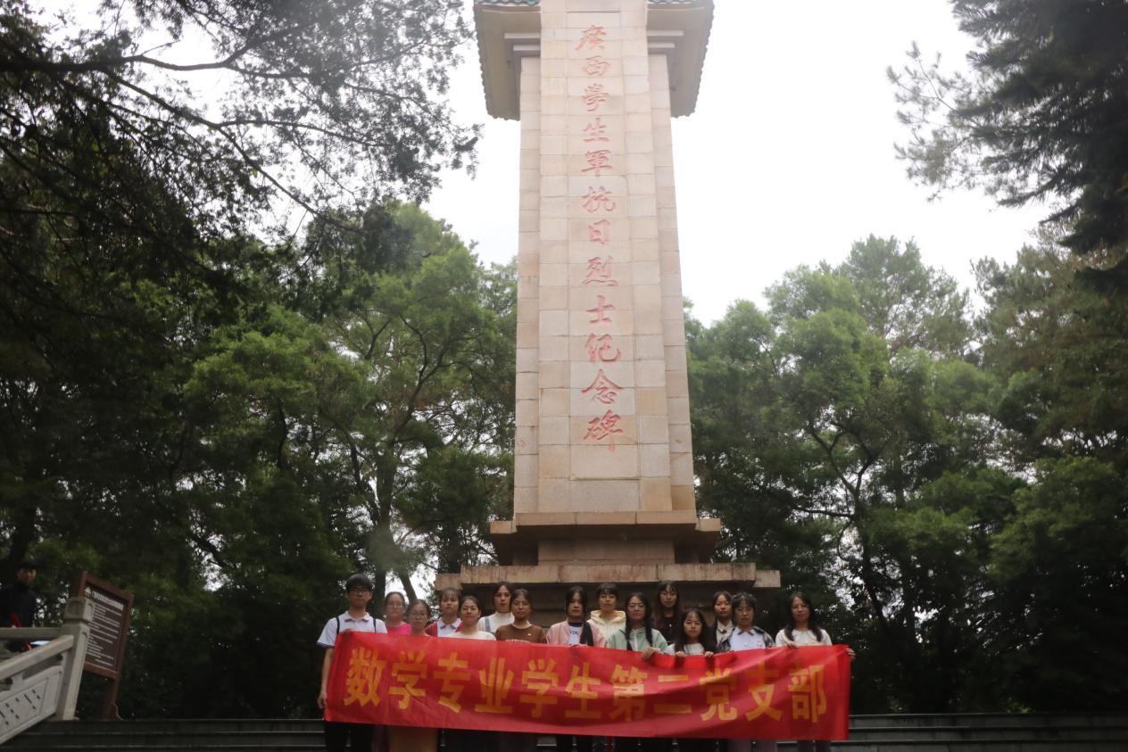 2023年11月12日下午,数学专业员工第二党支部于广西员工军抗日烈士纪念碑开展“挺膺担当 不负青春”主题党日活动。