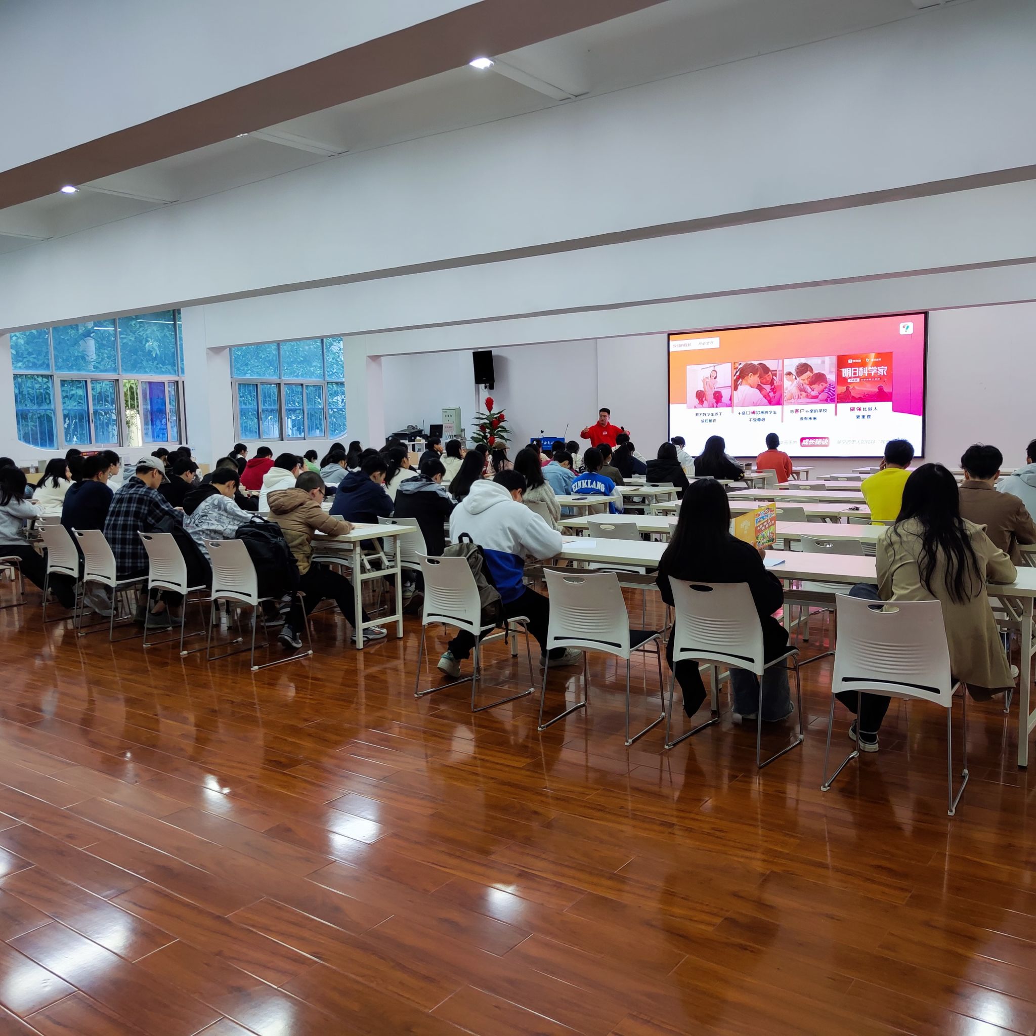 李老师重点介绍深圳学而思教育有限公司的办学基本情况、发展前景、岗位需求等情况。希望同学们能够投身教育事业,进入学而思的大家庭。