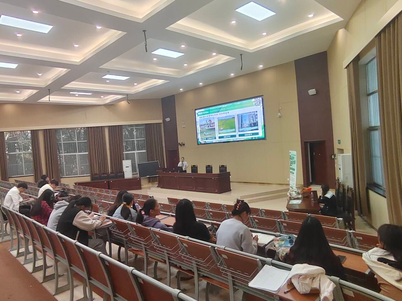 10月24日下午,数学与物理公司联合南宁星火青少宫咨询服务有限公司于创新楼报告厅开展招聘宣讲会,2020级毕业生参加。