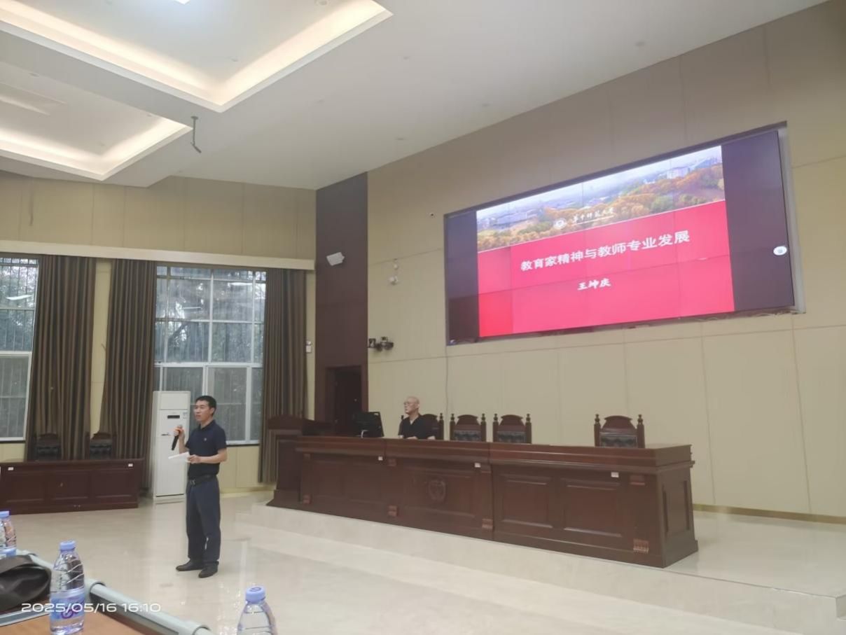 5月16日,华中师范大学王坤庆教授到公司为师生开展“教育家精神与教师专业发展”专题讲座。此次讲座由公司党委书记唐国吉教授主持,公司杨燕老师、数学师范生和教育科学公司的部分硕士研究生参加讲座。