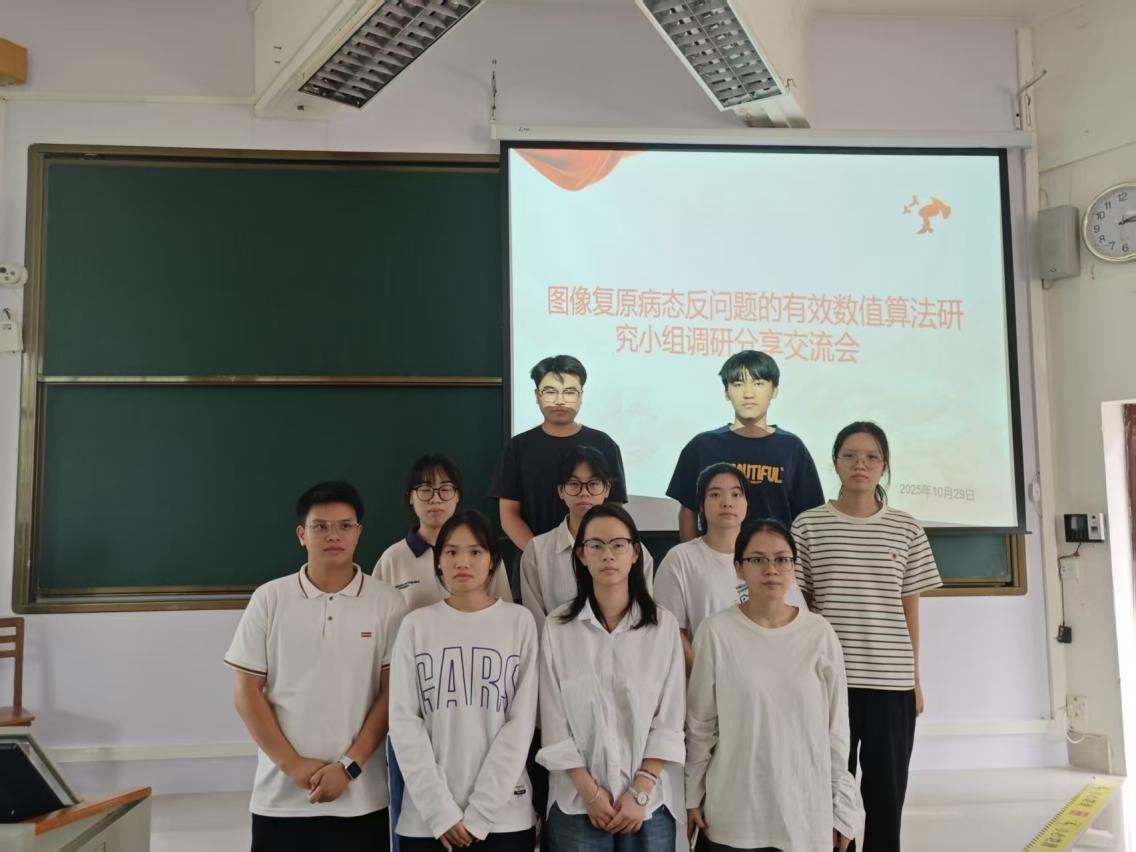 2025年10月29日,在推进“图像复原病态反问题的有效数值算法研究”项目过程中,图像复原病态反问题的有效数值算法研究项目团队特邀广西大学数学协会研究小组来校开展学术交流活动。