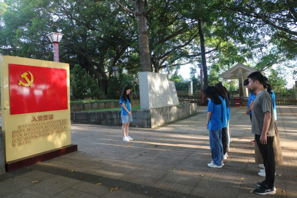 7月11日课业辅导后,团队前往涠洲烈士陵园开展了红色教育实践活动,该烈士陵园展示了涠洲岛明清海防要塞、抗战时期涠洲武装起义、1950年解放涠洲战役等历史故事,再现了涠洲军民在中国共产党领导下艰苦卓绝的革命斗争历程,以及忠勇报国、不屈不挠、牺牲奉献、团结奋进的伟大精神,彰显浓郁爱国主义和国防教育红色主题。团队成员在涠洲革命烈士纪念碑前,向革命先烈默哀一分钟,祭奠革命烈士,追忆他们的英雄事迹,缅怀他们的丰功伟绩,继承和发扬革命先烈的革命精神和优良传统。